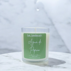 Refresh your space with the crisp, clean fragrance of Agua de Pepino. Inspired by the cool and revitalizing Mexican cucumber agua fresca, this candle combines the fresh scent of juicy cucumber, zesty lime, and a touch of agave for a light, invigorating aroma. It’s the perfect candle to brighten up your day, giving off spa-like vibes with every burn. Whether you need a pick-me-up or want to create a calming atmosphere, Agua de Pepino is your go-to for instant refreshment and relaxation.
